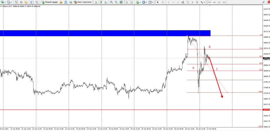 Торговая идея на падение BitcoinИнстаФорекс - Instaforex, 2 года назад Добрый день, уважаемые трейдеры! Представляю вашему вниманию торговую идею по Bitcoin. Вчера поздно вечером на американской сессии главный криптотокен потерял за час 2500$ и в настоящий момент довольно глубоко откатил, предоставляя хорошие цены на шортистов в рамках структуры "АВС": Примечательно то, что падение Bitcoin произошло от зоны слома 16 апреля. Предлагаем вместе с вами поохотиться за стопами покупателей по схеме, представленной на скрине ниже: Фактически имеем трёхволновую структуру "АВС", где волной А выступает вчерашняя шортовая инициатива. |