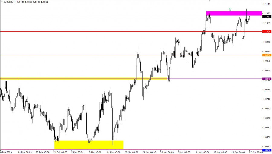 Учимся и анализируем, торговый план для начинающих трейдеров EURUSD и GBPUSD 27.04.23ИнстаФорекс - Instaforex, 2 года назад Детали экономического календаря от 26 апреля Объем заказов на товары длительного пользования в США выше прогноза, но влияние на рынок оказало интервью члена Исполнительного совета ЕЦБ Филипа Р. Лейна. Данные статистики показали рост объема заказов на 3,2% в марте год к году и на 0,3% месяц к месяцу. Тем не менее рынок не проявил должного внимания к этим данным. Основной рычаг для рынка стало интервью, в котором Лейн ясно заявил о дальнейшем повышении процентной ставки. Он сказал, что текущие данные указывают на необходимость повышения ставки на следующем заседании Совета управляющих, которое состоится 4 мая. Он также отметил, что анализ показывает, что оставлять депозитную ставку на текущем уровне 3% нецелесообразно. Разбор торговых графиков от 26 апреляПара EURUSD не только вернулась выше контрольного уровня 1.1000, но и обновила локальный максимум среднесрочного тренда. Это свидетельствует о преобладании восходящего настроя среди участников рынка, что в долгосрочной перспективе может подтолкнуть к росту курс евро. С другой стороны, фунт стерлингов в отношении доллара США продемонстрировал локальный восходящий тренд, однако это движение не привело к значительным изменениям. Котировка продолжает двигаться в рамках бокового канала 1.2350/1.2550 уже третью неделю. Экономический календарь на 27 октября