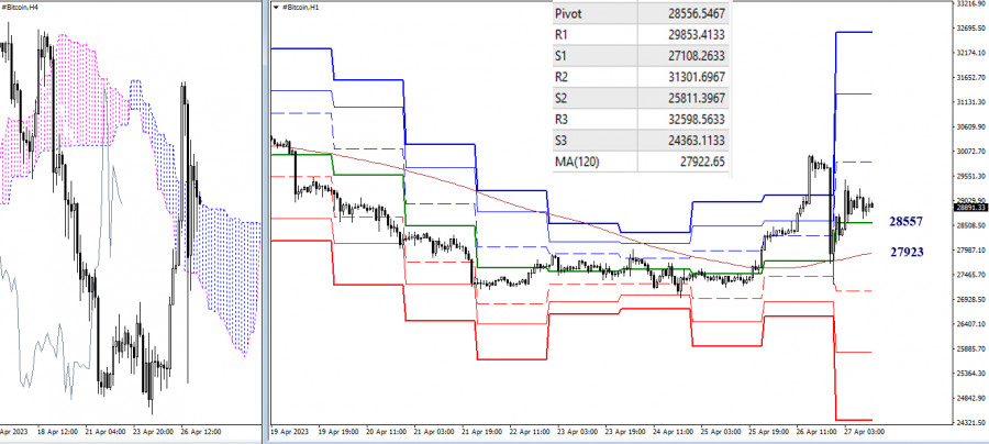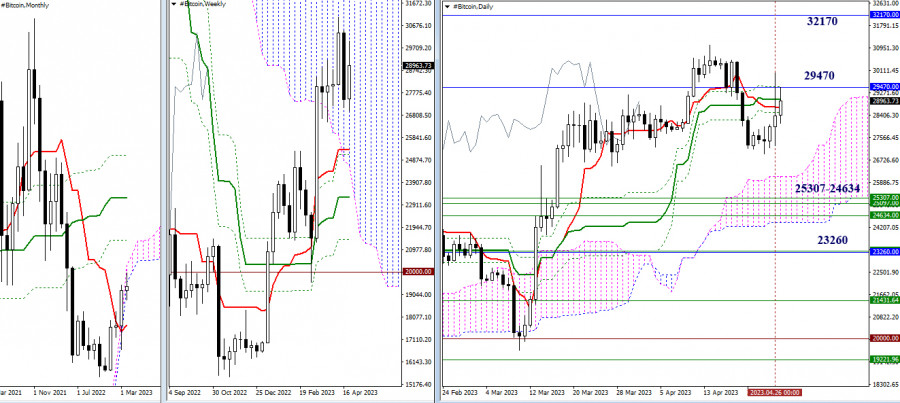 BITCOIN – технический анализ ситуацииИнстаФорекс - Instaforex, 2 года назад Bitcoin Не так давно биткоин сумел восстановиться до 30000, завладев поддержкой месячного краткосрочного тренда и оформив появление восходящих предпосылок на недельном таймфрейме, в виде золотого креста. В районе 30000 сейчас располагается месячное облако Ишимоку, в результате тестирования которого возникло торможение и некоторая консолидация. Месячное облако на данном участке расширяется и поднимается, поэтому борьба с ним может затянуться надолго. В настоящий момент границы облака расположены на рубежах 29470 и 32170. На ближайшее время это главные повышательные ориентиры, дальнейшие бычьи перспективы появятся лишь после подтверждённого пробоя и надёжного закрепления выше. В случае возврата на рынок медвежьих настроений и развития снижения интересы игроков на понижение будут направлены на поддержки дневного облака (26110 – 24378), скопление недельных уровней (25307 – 25097 – 24634) и месячный краткосрочный тренд (23260). На младших временных интервалах основное преимущество принадлежит сейчас игрокам на повышение, так как рынок работает выше ключевых уровней. Ориентирами для продолжения подъёма внутри дня сегодня служат сопротивления классических Пивот уровней (29853 – 31302 – 32599). Пробой ключевых уровней 28557 (центральный Пивот уровень дня) – 27923 (недельная долгосрочная тенденция) изменит действующий баланс сил, передав инициативу игрокам на понижение, если медведи воспользуются этим, то актуальными внутри дня станут понижательные ориентиры 27108 – 25811 – 24363 (поддержки классических Пивот уровней). *** При техническом анализе ситуации используются: старшие таймфреймы – Ichimoku Kinko Hyo (9.26.52) + уровни Фибо Киджун Н1 – Pivot Points (классические) + Moving Avarage 120 (недельная долгосрочная тенденция) Материал предоставлен компанией InstaForex - www.instaforex.com |