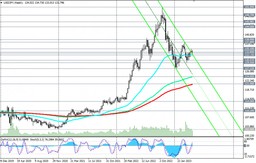 USD/JPY: сценарии динамики на 27.04.2023ИнстаФорекс - Instaforex, 2 года назад Как отметили мы в нашем сегодняшнем «Фундаментальном анализе», инвесторы в основном не торопятся совершать новые крупные сделки накануне важных событий, а пара USD/JPY консолидируется в зоне линии баланса, роль которой в данный момент выполняет 200-периодная скользящая средняя на дневном графике пары, вблизи отметок и уровней поддержки 133.85 (ЕМА200 на дневном графике), 133.40 (ЕМА50 на дневном и ЕМА200 на 4-часовом графике). Также необходимо обратить внимание на сформировавшийся в последние несколько дней диапазон между локальным уровнем сопротивления 135.10 и уровнем поддержки 132.70 (ЕМА50 на недельном графике). Пробой этого уровня поддержки направит USD/JPY внутрь нисходящего канала на недельном графике, нижняя граница которого проходит вблизи отметки 110.00 и ключевого уровня поддержки 110.20 (ЕМА200 на месячном графике), отделяющего глобальный бычий рынок пары от медвежьего. Пока же (в долгосрочной и среднесрочной перспективах) пара продолжает торговаться в зоне бычьего рынка, выше ключевых уровней поддержки 124.00 (ЕМА144 на недельном графике), 121.00 (ЕМА200 на недельном графике), что делает предпочтительными длинные позиции. Поэтому в случае пробоя важного уровня сопротивления 134.25 (ЕМА144 на дневном графике) следует возобновить длинные позиции. Пробой уровня сопротивления 135.10 станет подтверждающим сигналом основного сценария. В альтернативном же сценарии цена пробьёт вышеуказанные уровни поддержки и направится, как мы отметили выше, внутрь нисходящего канала на недельном графике, пока - в сторону локального уровня поддержки и минимума года на отметке 127.22. Если снижение продолжится, то пробой ключевых уровней поддержки 124.00, 121.00 выведет USD/JPY в зону долгосрочного медвежьего рынка. *) о важных событиях недели см. в Важнейшие экономические события недели 24.04.2023 – 30.04.2023 Уровни поддержки: 133.85, 133.40, 133.00, 132.70, 130.57, 129.55, 127.22, 124.00, 121.00 Уровни сопротивления: 134.25, 135.00, 135.10, 137.00, 137.80, 138.90 Материал предоставлен компанией InstaForex - www.instaforex.com |