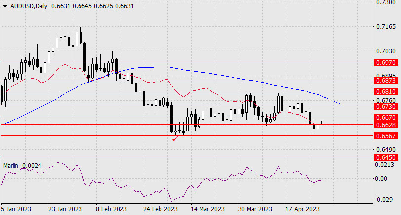 Прогноз по AUD/USD на 28 апреля 2023 годаИнстаФорекс - Instaforex, 2 года назад AUD/USD Сейчас мы видим лишь активизацию спекулятивных операций, так как вчерашние объёмы торгов были наибольшими за последние две недели.