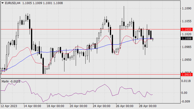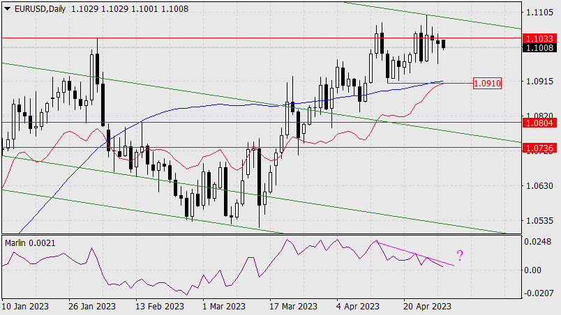 Вероятно, уже завтра сигнальная линия осциллятора Марлин переместится на территорию отрицательных значений, этим усилится техническое давление на цену, что перед заседаниями Центробанков бывает редко, обычно инвесторы в такие дни удерживают цену в нейтральном состоянии.