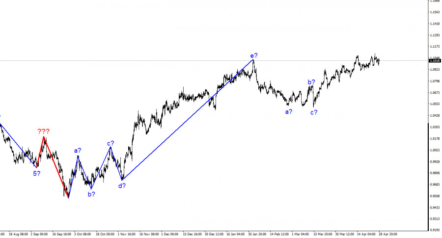 Анализ EUR/USD. 30 апреля. Проблемы немецкого ВВП = проблемы всей еврозоныИнстаФорекс - Instaforex, 2 года назад Волновая разметка 4-часового графика для инструмента Евро/Доллар продолжает запутываться из-за последних восходящих волн, но в целом не меняется в последние дни и недели. Эти волны вполне могут быть самостоятельным повышательным участком тренда (так как последний нисходящий можно считать трехволновым и завершенным), и он может также близиться к завершению, если примет трехволновой вид. Таким образом, по евровалюте волновая картина может получиться очень сложной, а работать по ней уже сейчас очень тяжело. На текущих позициях построение повышательного набора волн может завершиться, так как пик третьей волны зашел за пик первой. То же самое мы видели и в последней нисходящей формации (минимальное обновление лоу и завершение участка). Вместе с тем есть и другие варианты волновой разметки. Например, полноценная пятиволновая (но тоже коррекционная) структура. Я считаю, что сейчас целесообразно отталкиваться от сценария с понижением инструмента, потому что восходящая трехволновка выглядит вполне укомплектованно и завершенно. Следовательно, в ближайшее время может начаться построение новой нисходящей трехволновки, однако новая удачная попытка прорыва отметки 1,1030 указывает на готовность рынка к новым покупкам. Пока что не спешим с продажами. ЕЦБ «ястребиную» риторику, но делать это становится все сложнее и сложнееИнструмент Евро/Доллар в пятницу не изменился. В течение дня амплитуда была вновь очень невысокой, всего около 30 базовых пунктов. Инструмент сначала снизился на 60, потом вырос на 60, на этом все и закончилось. Более того, впервые за долгое время рынок в целом достаточно логично отыграл всю полученную статистику. А ее было много и поступать она начала с самого утра. Сначала в Германии вышли отчеты по ВВП, инфляции и безработице. ВВП в первом квартале не изменился в сравнении с предыдущим и составил 0%. Инфляция снизилась всего на 0,2% в апреле и составила 7,2% г/г. Уровень безработицы не изменился и составил в марте 5,6%. Помимо этого, вышел отчет по ВВП в первом квартале Еврозоны – +0,1% кв/кв. Как видим, показатели экономического роста оказались минимальными, ниже ожиданий рынка и граничат с понятием рецессии. Инфляция вновь снижается медленно, а безработица остается на достаточно высоком уровне и может только разгоняться по мере ужесточения денежно-кредитной политики ЕЦБ. Однако все эти данные, как я уже сказал, привели всего лишь к 60-пунктовым потерям евровалюты, которая та очень быстро вернула себе назад. Инструмент остается около пика предполагаемой волны с, сама волна с приняла достаточно сложный и нечитаемый вид и уже несколько недель подряд никак не может завершить свое построение. Новостной фон «скачет» и не позволяет рынку торговать в одном направлении. Я по-прежнему жду построения нового понижательного набора волн, но его старт постоянно откладывается. Общие выводыИсходя из проведенного анализа, я делаю вывод, что построение повышательного участка тренда близится к завершению. Поэтому сейчас можно посоветовать продажи, а инструмент имеет довольно большой простор для снижения. Я думаю, что цели в районе 1,0500-1,0600 можно считать вполне реальными. С этими целями я и советую продажи инструмента по разворотам индикатора MACD