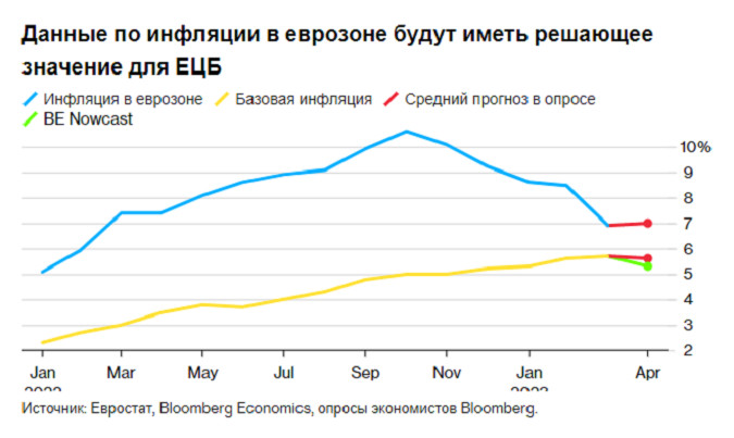 Мощнейшая новостная неделя с двумя ставками по EUR и USDИнстаФорекс - Instaforex, 2 года назад Решение Европейского центрального банка по процентной ставке будет принято на этой неделе в четверг после ставки ФРС, но за два дня до этого все ожидают поступления двух ключевых экономических отчетов. Во вторник утром впервые будет опубликован ежеквартальный обзор банковского кредитования ЕЦБ, предлагающий первое представление о том, как недавние потрясения в финансовом секторе повлияли на рост кредитования. Через час Евростат опубликует апрельские данные по инфляции, при этом аналитики прогнозируют рост основного показателя, но замедление базового показателя, на который политики в настоящее время обращают больше внимания. В Совете управляющих ЕЦБ, состоящем из 26 членов, существует широкое согласие в отношении того, что депозитная ставка, составляющая в настоящее время 3%, должна повышаться еще больше, чтобы бороться с ростом потребительских цен, который все еще намного превышает целевой показатель в 2%. Пару EURUSD ожидают самые большие потрясения на этой неделе в связи с двумя ставками - по EUR и USD через день. Инструмент встречает новости на хаях года: Но в отличие от предыдущих встреч, когда многие официальные лица заранее озвучивали свои предпочтения в отношении корректировки стоимости заимствований, важность оставшихся данных - не говоря уже о решении Федеральной резервной системы в среду - оставляет выбор между повышением на 25 или 50 базисных пунктов в воздухе. |