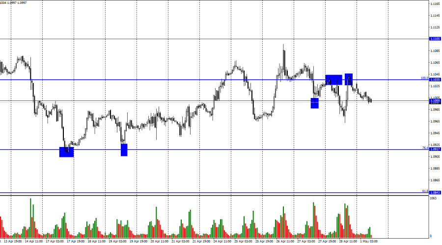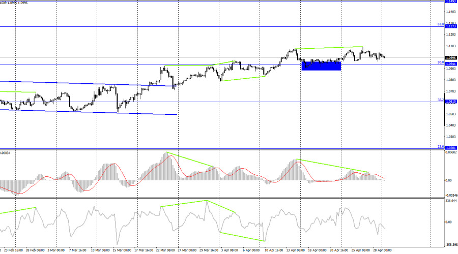 EUR/USD. 1 мая. Начинается важнейшая неделя для трейдеровИнстаФорекс - Instaforex, 2 года назад Добрый день, уважаемые трейдеры! Пара EUR/USD в пятницу выполнила отбой от уровня коррекции 100,0%, 1,1035, некоторое падение, возврат к уровню 1,1035 и еще один отбой от него. На текущий момент пара выполнила разворот в пользу американской валюты и начала новый процесс падения в направлении коррекционного уровня 76,4%, 1,0917. Закрепление курса пары над уровнем 1,1035 вновь сработает в пользу валюты ЕС и возобновления роста в направлении уровня 1,1105. Текущая неделя обещает быть очень интересной. Во-первых, состоится заседание FOMC, по итогам которого процентная ставка может вырасти еще на 0,25%. К такому решению трейдеры уже готовы. Во-вторых, состоится пресс-конференция с Джеромом Пауэллом, что очень важно для перспектив доллара, испытывающего сильные проблемы в последние месяцы. Если Пауэлл допустит еще одно или два повышения ставки, то валюта США наконец может показать рост, так как это будет неожиданностью для рынка. В-третьих, начало нового месяца, а значит выйдут данные по безработице и пэйроллам. Показатель Nonfarm Payrolls в последние месяцы постоянно снижался, показывая ухудшение состояния рынка труда, и пятничный отчет вряд ли станет исключением. Тем не менее более важное значение будет иметь, насколько трейдеры угадают с фактическим значением. В любом случае экономика США потихоньку замедляется, о чем говорят последние отчеты по ВВП. Таким образом, у доллара нет оснований для сильного роста, но в то же время падает он тоже уже достаточно давно. В Евросоюзе сейчас экономика тоже переживает не лучшие времена, поэтому евровалюта не может иметь поддержки за счет экономических данных. Уже сегодня в Америке выйдет отчет индекс ISM, который, вероятно, не покажет положительной динамики. В первой половине дня валюта США немного растет, но это слишком слабый рост, чтобы на его основании делать выводы. На 4-часовом графике пара выполнила закрепление над боковым коридором, что позволяет рассчитывать на продолжение роста в направлении уровня коррекции 61,8% - 1,1273. Вчера была образована «медвежья» дивергенция у индикатора MACD, которая сработала в пользу валюты США и падения в направлении уровня Фибо 50,0% - 1,0941. Отбой котировок от этого уровня позволит ожидать на новый рост, а закрытие под ним – на продолжение падения в направлении уровня коррекции 38,2%, 1,0610. Отчет Commitments of Traders (COT):