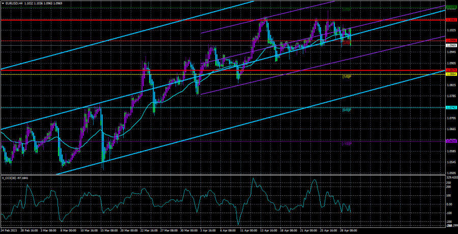 Обзор пары EUR/USD. 2 мая. Доллар опять находится в невыгодном положении.ИнстаФорекс - Instaforex, 2 года назад Валютная пара EUR/USD в понедельник торговалась в той же манере, к которой уже все привыкли за последние недели и месяцы. Четкое направление движение отсутствовало внутри дня, но в среднесрочной перспективе оно остается ярко выраженным восходящим и при этом безосновательным. Пара в очередной раз закрепилась ниже скользящей средней линии только для того, чтобы опять не начать падение. Индикатор CCI уже дважды заходил в область перекупленности(что является довольно редким сигналом на продажу), но никакого падения мы по-прежнему не видим. Мы даже не знаем, сколько еще нужно подтверждений тому, что евровалюта растет нелогично, сильно перекуплена и нуждается в коррекции. Некоторые эксперты до сих пор считают обоснованным рост валюты Евросоюза(как и валюты Великобритании). Мы же хотим напомнить, что даже если все факторы играют в пользу какой-либо одной валюты, это не означает, что коррекций можно обойтись. На самом деле такое довольно редко случается, когда абсолютно все факторы поддерживают только одну валюту, и в такой ситуации мы еще можем понять одностороннее движение. Но сейчас ситуация прямо противоположная. Если большинство факторов и не поддерживает американскую валюту, то совершенно точно оно не поддерживает и евро. Понять, что мы имеем ввиду, можно достаточно легко, сравнив лишь два ключевых показателя: ВВП и ключевые ставки. ВВП в США второй квартал подряд замедляется, но при этом минимальный рост за этот период времени составляет 1,1% кв/кв. В Евросоюзе за последние шесть кварталов рост не превышал 0,9% кв/кв. Ключевая ставка ФРС продолжает расти и существенно превышает ставку ЕЦБ. Тот факт, что ЕЦБ может повысить свою ставку в течение 2023 года чуть сильнее, чем ФРС – это лишь один из факторов, которые поддерживают евро. Но хотим напомнить, что ЕЦБ – не добрый волшебник, который может ужесточать столько, сколько потребуется. Еще максимум 2-3 повышения и цикл будет завершен. То есть потенциально ставка ЕЦБ может вырасти сильнее ставки ФРС максимум на 0,5% и все равно останется ниже нее. Евровалюта же растет уже полтора месяца без коррекций... Банковский кризис в США продолжается.К сожалению, рынок по-прежнему обращает слишком много внимания на позитив для евро и слишком мало внимания на позитив для доллара. Большая часть новостей и данных, которые могли бы поддержать доллар, просто игнорируются. Вот и в последние два торговых дня доллар не сумел показать существенный рост, хотя данные по ВВП в Евросоюзе и Германии разочаровали. А все потому, что в Америке начал испытывать финансовые проблемы еще один крупный банк – First Republic Bank. Его акции рухнули на 90%, а правительство США в данное время старается спасти еще один проблемный банк. Безусловно, новость об очередном крахе не может не сказаться на национальной валюте, но хотим напомнить, что в Евросоюзе тоже не обошлось без крахов. И при этом европейская валюта не слишком торопилась вниз. Таким образом, в пятницу и понедельник трейдеры просто получили новый повод сохранить высоким спрос на евро и низким на доллар. По-прежнему участники рынка не собираются фиксировать прибыль по лонгам, что могло бы привести к коррекции. Но на этой неделе все же состоится заседание ФРС, а также заседание ЕЦБ. О