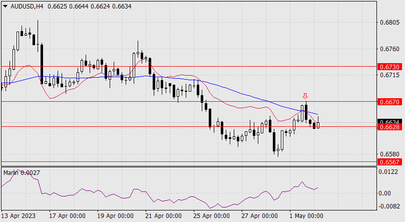 Прогноз по AUD/USD на 2 мая 2023 годаИнстаФорекс - Instaforex, 2 года назад AUD/USD На текущий момент цена пытается преодолеть эту поддержку, через несколько часов РБА примет решение по монетарной политике, ожидается удержание ставки на уровне 3,60%. Такое решение Центробанка вряд ли поспособствует укреплению австралийской валюты, даже если риторика будет умеренно агрессивной, так как уже завтра ФРС почти гарантированно повышает ставку минимум на 0,25%. Ближайшая цель пары 0.6567 – минимум 8 марта, далее ждём продвижения к 0.6450.