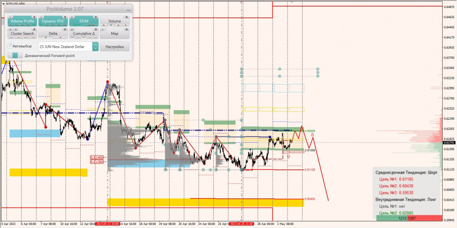 Среднесрочная тенденция: в шорт. Максимальное скопление объемов среднесрочной тенденции расположено в диапазоне по котировкамт0.61300-0.61400. В настоящий момент по паре совершаются инвестиционные операции выше, указывая на слабость продавцов.
