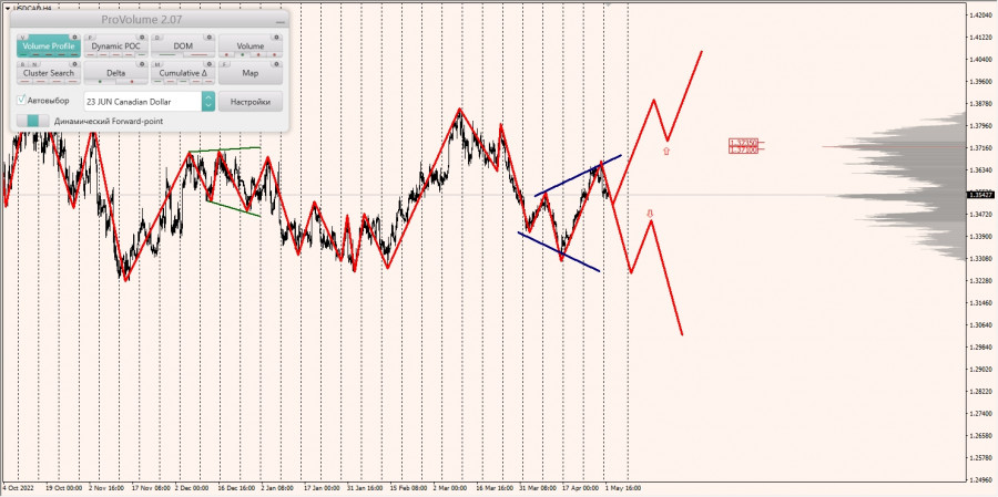 Область выгодных цен на покупку с точки зрения маржинального обеспечения располагается между зонами 1/4 и 1/2, построенными от максимума 28.04.2023.