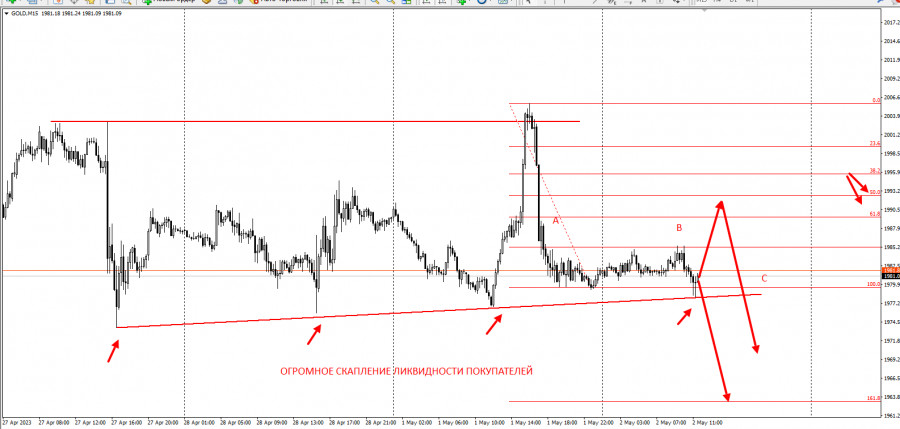 Золото на грани обвала. Техническая ловушка покупателейИнстаФорекс - Instaforex, 2 года назад Добрый день, уважаемые трейдеры! Представляю вашему вниманию торговую идею по GOLD. Итак, вчера после мощнейшей шортовой инициативы на американской сессии котировки золота опять опустились трендовой поддержке, оказывая на неё давление четвёртый раз подряд. Как показывают наблюдения, такое давление рано или поздно приводит к пробою, и на этом можно либо заработать, либо не потерять. Следует отметить, что в данной ситуации покупатели находятся в явной ловушке, которая в ближайшее время захлопнется: Фактически имеем трёхволновую структуру "АВС", где волной А выступает вчерашняя шортовая инициатива. Покупателям предлагаем временно отказаться от лонговых позиций с установкой рисков за 1973 и 1968. |