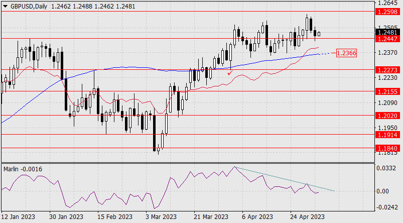 Прогноз по GBP/USD на 3 мая 2023 годаИнстаФорекс - Instaforex, 2 года назад GBP/USD И так как мы видим уже сформированную двойную дивергенцию цены с осциллятором, то рассчитываем на прорыв ближайшей поддержки и дальнейшее снижение к линии Крузенштерна в районе отметки 1.2366. Преодоление этой линии открывает цель 1.2273 (минимум 3 апреля).