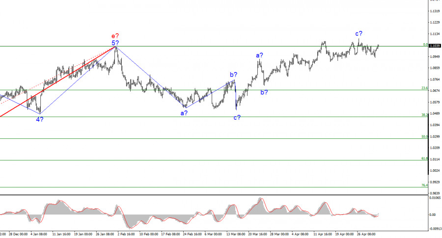 Анализ EUR/USD. 3 мая. ФРС повысит ставку, но рынку это не слишком интересноИнстаФорекс - Instaforex, 2 года назад Волновая разметка 4-часового графика для инструмента Евро/Доллар продолжает запутываться из-за последних восходящих волн, но в целом не меняется в последние дни и недели. Эти волны вполне могут быть самостоятельным повышательным участком тренда (так как последний нисходящий можно считать трехволновым и завершенным), и он может также близиться к завершению, если примет трехволновой вид. Таким образом, по евровалюте волновая картина может получиться очень сложной, а работать по ней уже сейчас очень тяжело. На текущих позициях построение повышательного набора волн может завершиться, так как пик третьей волны зашел за пик первой. То же самое мы видели и в последней нисходящей формации (минимальное обновление лоу и завершение участка). Вместе с тем есть и другие варианты волновой разметки. Например, полноценная пятиволновая (но тоже коррекционная) структура. Я считаю, что сейчас целесообразно отталкиваться от сценария с понижением инструмента, потому что восходящая трехволновка выглядит вполне укомплектованно и завершенно. Следовательно, в ближайшее время может начаться построение новой нисходящей трехволновки, однако новая удачная попытка прорыва отметки 1,1030 укажет на готовность рынка к новым покупкам. Итоги заседания ФРС предрешены на 90%Инструмент Евро/Доллар в среду повысился на 40 базовых пунктов. Уже несколько недель подряд мы наблюдаем горизонтальное движение, поэтому изменение цены на 40-50 пунктов вверх или вниз никак не влияет на текущую волновую разметку. Оно просто затягивает завершения волны с и всего повышательного участка тренда и откладывает построение нового нисходящего. Отдельные экономические отчеты вызывают реакцию рынка, но эта реакция по-прежнему не помогает инструменту начать снижение, которое предусматривается текущей волновой разметкой. Таким образом, волновая картина не меняется, а сегодня вечером – подведение итогов заседания ФРС, что всегда очень интересно и важно для рынка, но, возможно, не сегодня. Рынок уверен на 90%, что сегодня вечером FOMC объявит о новом повышении процентной ставки на 25 базисных пунктов. Это решение уже заложено в текущие цены, а других сценариев нет. Практически никто не ждет от ФРС паузы в мае, и никто не ждет повышения ставки на 50 пунктов. Исходя из этого, будет очень важным то, что скажет на пресс-конференции Джером Пауэлл. Аналитики разделились во мнениях по этому вопросу. Некоторые считают, что Пауэлл сохранит пространство для еще одного или двух повышений в случае необходимости, другие, что Пауэлл открыто заявит о паузе в ужесточении денежно-кредитной политики. Я считаю, что гадать, что именно скажет Пауэлл вечером, не имеет никакого смысла. Надо просто дождаться его выступления и действовать дальше согласно новостному фону. Безусловно, если Пауэлл намекнет на возможные дополнительные одно-два повышения ставки, спрос на валюту США вырастет. А это очень бы помогло в разрезе построения нового нисходящего набора волн. Общие выводыИсходя из проведенного анализа, я делаю вывод, что построение повышательного участка тренда близится к завершению или завершено. Поэтому сейчас можно посоветовать продажи, а инструмент имеет довольно большой простор для снижения. Я думаю, ч
