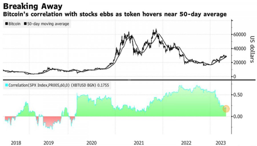 Биткойн своего не упуститИнстаФорекс - Instaforex, 2 года назад История повторяется. Если исходить из этого принципа, биткойн должен порхать как бабочка. В апреле он закрыл четвертый месяц подряд в зеленой зоне, продемонстрировав самую продолжительную серию побед с 2020-2021. Когда в прошлом токен рос четыре и более месяцев кряду, в последующий год он прибавлял 260% к своей стоимости. Исходя из текущих цен, речь идет о ралли BTC/USD к отметке 100000. Однако на самом деле раз на раз не приходится. На первый взгляд, главным драйвером роста биткойна является банковский кризис. Подрыв доверия к кредитным учреждениям из-за их банкротств и к фиатным валютам способствует переливу капитала в криптосферу. Токены являются альтернативой банковским депозитам, отток который лежит в основе текущего кризиса. Если так, то обвал акций региональных банков должен был взвинтить котировки BTC/USD выше 30000. Но этого не произошло. Почему? Динамика акция американских банков Во-первых, есть риск проиграть. Из 40000 эмитированных в 2022 токенов четверть оказались мошенничеством. Даже вложение средств в самые надежные крипто-активы и криптоинституты не гарантирует сохранения денег. Это доказывают крахи Terra и FTX. Сейчас Комиссия по ценным бумагам имеет претензии к Binance, а банкротство одного из крупнейших крипто-кредиторов Genesis сопоставимо с уходом из жизни First Republic. Во-вторых, падающие в бездну акции банков тянут за собой фондовые индексы США. В результате аппетит к риску ухудшается, и первыми под удар попадают доходные активы. И прибавивший 70% к своей стоимости с начала года биткойн находится в рядах пострадавших. Следует отметить, что токен сопротивляется. Это приводит к снижению корреляции BTC/USD c S&P 500. Динамика биткойна и его корреляции с S&P 500 Вместе с тем фондовый индекс фондовому индексу рознь. Наибольшая связь у лидера сектора криптовалют с Nasdaq Composite. И рекомендация JP Morgan покупать этот актив, а также золото в случае наступления рецессии в экономике США греет слух поклонникам биткойна. На мой взгляд, банковский кризис несет больше позитива криптоактивам, чем негатива. Обвал акций кредитных учреждений в условиях, когда на рынке вроде бы все успокоилось, это своеобразное давление на ФРС. Действительно, многие из тех эмитентов, акции которых падали, имели прибыли в первом квартале. First Republic был поглощен более крупным банком. Все спокойно? Ан-нет! Федрезерв просто обязан совершить «голубиный» разворот, чтобы спасти всю систему. Если Центробанк начнет снижать ставки, ослабнет доллар США. Эта новость является хорошей для всего сектора крипто-активов. Если доверие к фиатным деньгам подорвано, биткойн и его аналоги процветают. Технически выход BTC/USD из треугольника и закрепление выше справедливой стоимости на 29250 являются необходимыми условиями восстановления восходящего тренда. При таком раскладе наращиваем покупки в направлении таргета на 161,8% по паттерну AB=CD. Он расположен вблизи отметки 33500. Материал предоставлен компанией InstaForex - www.instaforex.com |