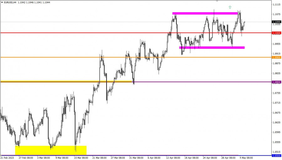 Учимся и анализируем, торговый план для начинающих трейдеров EUR/USD и GBP/USD 05.05.23ИнстаФорекс - Instaforex, 2 года назад Детали экономического календаря от 4 мая Европейский Центральный Банк (ЕЦБ) принял решение повысить процентную ставку до 3,75%, увеличив ее на 25 базисных пунктов и следуя тем самым за Федеральной резервной системой (ФРС), которая также замедлила темп повышения ставок. Несмотря на то, что это самый высокий уровень ставки с осени 2008 года, рынок отреагировал на новость ослаблением курса евро, так как ожидал более жестких мер от регулятора. Однако комментарии ЕЦБ указывают на высокую вероятность повышения ставки на следующем заседании. В то же время, запал регулятора похоже остывает, несмотря на то, что базовая инфляция составляет 5,6%, а общая – 7%. Разбор торговых графиков от 4 маяКурс евро по отношению к доллару США проявил спекулятивную активность в результате итогов заседания ЕЦБ. В ходе данной активности курс опустился ниже уровня 1.1000, но радость продавцов продлилась не долго, поскольку курс быстро восстановился, практически до уровня до спада. С другой стороны, фунт стерлингов по отношению к доллару США усилил длинные позиции после того, как отскочил от ранее пройденного уровня 1.2550. Это привело к продолжению среднесрочного восходящего тренда, который обновил локальный максимум. Экономический календарь на 5 мая