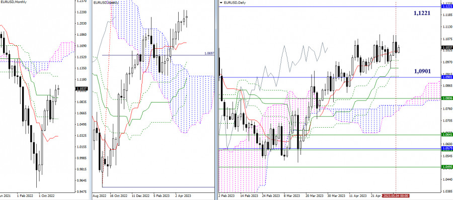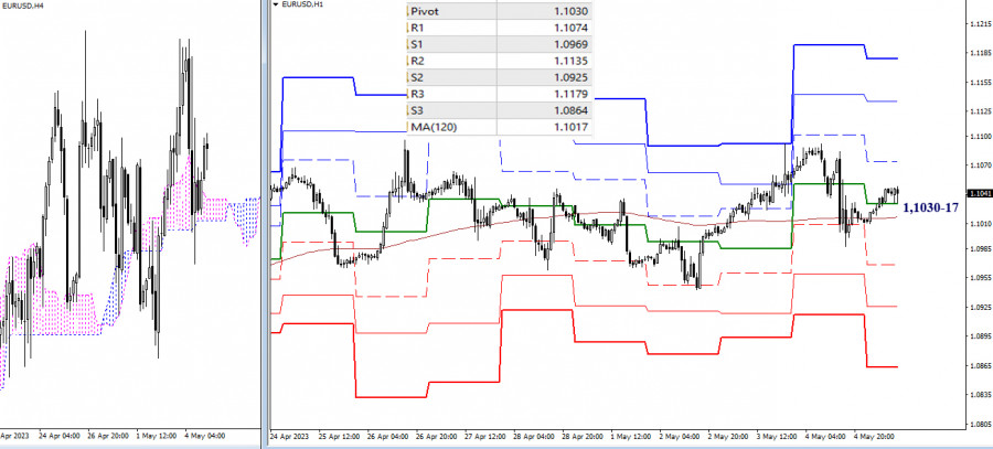 EUR/USD и GBP/USD 5 мая – технический анализ ситуацииИнстаФорекс - Instaforex, 2 года назад EUR/USD Старшие таймфреймы В прошлые сутки произошла очередная смена дневных настроений, в результате к концу первой рабочей недели мая пара продолжает сохранять неопределённость. Отмеченные ранее ориентиры, которые будут актуальны в случае изменения ситуации, остаются на своих местах и сохраняют значение. Так при подъёме интерес игроков на повышение будет направлен на сопротивление заключительного месячного креста Ишимоку (1,1221), а в случае снижения игроки на понижение в первую очередь сосредоточатся на ликвидации дневного золотого креста (1,1019 – 1,0979 – 1,0942 – 1,0906) и преодолении поддержки месячного среднесрочного тренда (1,0901). Н4 – Н1 Очередное преимущество игроков на повышение длилось недолго. Сейчас пара на младших временных интервалах вновь тестирует ключевые уровни, они сегодня расположены на 1,1030 (центральный Пивот уровень дня) и 1,1017 (недельная долгосрочная тенденция). Работа выше ключевых уровней обеспечивает предпосылки для развития бычьих настроений. Ориентиры для развития такого движения внутри дня сегодня находятся на рубежах сопротивлений классических Пивот уровней (1,1074 – 1,1135 – 1,1179). Закрепление ниже ключевых уровней (1,1030-17) способно изменить действующий баланс сил в пользу усиления медвежьих настроений, поддержками на этом пути будут служить 1,0969 – 1,0925 – 1,0864 (классические Пивот уровни). *** GBP/USD Старшие таймфреймы На дневном таймфрейме пара приступила к пробою отработанной дневной цели (1,2580). Далее при продолжении подъёма значение будет иметь прохождение сопротивления 1,2760 (заключительный уровень месячного мёртвого креста Ишимоку). Роль ближайших поддержек сейчас выполняет дневной крест Ишимоку 1,2510 – 1,2495 – 1,2453 – 1,2411. Его пробой и ликвидация позволят вновь сосредоточить силы рынка на месячном среднесрочном тренде (1,2302). Н4 – Н1 На младших таймах преимущество сейчас на стороне игроков на повышение. Они уже протестировали часть сопротивлений классических Пивот уровней, в качестве ориентира здесь остался R3 (1,2645). Ключевые уровни младших временных интервалов сегодня расположены на поддержках 1,2571 (центральный Пивот уровень дня) и 1,2531 (недельная долгосрочная тенденция). Их пробой и закрепление ниже способно лишить быков действующего преимущества. Далее ситуацию лучше будет оценить заново. *** При техническом анализе ситуации использованы: старшие таймфреймы – Ichimoku Kinko Hyo (9.26.52) + уровни Фибо Киджун; младшие таймфреймы – Н1 – Pivot Points (классические) + Moving Avarage 120 (недельная долгосрочная тенденция). Материал предоставлен компанией InstaForex - www.instaforex.com |