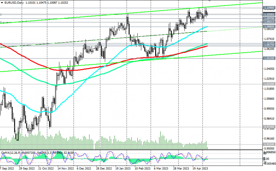 EUR/USD: сценарии динамики на 05.05.2023ИнстаФорекс - Instaforex, 2 года назад Как мы отметили в нашем сегодняшнем «Фундаментальном анализе», на момент публикации данной статьи EUR/USD торговалась вблизи отметки 1.1025, на 12 пунктов выше цены закрытия вчерашнего торгового дня. Пара остается в диапазоне, ограниченном ключевыми уровнями поддержки 1.0970 (ЕМА144 на недельном графике) и сопротивления 1.1090 (ЕМА200 на недельном графике), сохраняя позитивную динамику. Однако для окончательного прорыва в зону долгосрочного бычьего рынка паре необходим подтвержденный пробой отметки 1.1090. В случае закрепления в этой зоне целью роста пары становится уровень сопротивления 1.1600 (верхняя граница восходящего канала на недельном графике и ЕМА200, ЕМА144 на месячном графике), отделяющий глобальный бычий тренд от медвежьего. В альтернативном сценарии целью коррекционного снижения может стать уровень поддержки 1.0931 (ЕМА200 на 4-часовом графике). Пробой уровня поддержки 1.0880 (ЕМА50 на дневном графике) повысит риски слома среднесрочного тренда, направив пару к ключевым уровням поддержки 1.0690 (ЕМА144 на дневном графике), 1.0675 (ЕМА50 на недельном графике), 1.0660 (ЕМА200 на дневном графике). Первым сигналом для реализации данного сценария может стать пробой важного краткосрочного уровня поддержки 1.1016 (ЕМА200 на 1-часовом графике). Уровни поддержки: 1.1016, 1.1000, 1.0970, 1.0931, 1.0900, 1.0880, 1.0800, 1.0690, 1.0675, 1.0660, 1.0600, 1.0520 Уровни сопротивления: 1.1090, 1.1125, 1.1200, 1.1300, 1.1400, 1.1500, 1.1600 *) об особенностях торговли парой см. в EUR/USD: валютная пара (характеристики, рекомендации) Материал предоставлен компанией InstaForex - www.instaforex.com |
