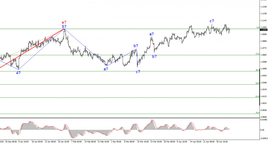 Анализ EUR/USD. 6 мая. Американская отчетность сильна, но есть нюанс.ИнстаФорекс - Instaforex, 2 года назад Волновая разметка 4-часового графика для инструмента Евро/Доллар продолжает запутываться из-за последних восходящих волн, но в целом не меняется в последние дни и недели. Эти волны вполне могут быть самостоятельным повышательным участком тренда(так как последний нисходящий можно считать трех волновым и завершенным), и он может также близиться к завершению, если примет трех волновой вид. Таким образом, по евровалюте волновая картина может получается очень сложной, а работать по ней уже сейчас очень тяжело. На текущих позициях построение повышательного набора волн может завершиться, так как пик третьей волны зашел за пик первой. Тоже самое мы видели и в последней нисходящей формации(минимальное обновление лоу и завершение участка). Вместе с тем, есть и другие варианты волновой разметки. Например, полноценная пяти волновая(но тоже коррекционная) структура. Я считаю, что сейчас целесообразно отталкиваться от сценария с понижением инструмента, потому что восходящая трехволновка выглядит вполне укомплектованно и завершенно. Следовательно, в ближайшее время может начаться построение новой нисходящей трехволновки, однако новая удачная попытка прорыва отметки 1,1030 укажет на готовность рынка к новым покупкам. Пэйроллы сильны в апреле, но слабы в марте.Инструмент Евро/Доллар в пятницу повысился на 5 базовых пунктов. Таков итог самого важного дня текущей недели. Именно «самого важного», потому что реакция рынка на заседания ЕЦБ и ФРС был достаточно скромной, решения, принятые обоими регуляторами, не удивили рынки, риторика глав центральных банков была прогнозируемой. Напомню, что ФРС повысила процентную ставку на 25 базисных пунктов, но не исключила еще одно повышение в течение 2023 года. ЕЦБ повысил ставку на 25 базисных пунктов и пообещал продолжать ужесточение денежно-кредитной политики, так как инфляция остается высокой. Вернемся к пятничной статистике. Началось утро с отчета по розничной торговле с Евросоюзе, которая сократилась в объемах на 1,2% м/м в марте. Рынки ожидали снижения максимум на 0,1%. Спрос на европейскую валюту снизился после отчета. Количество пэйроллов в апреле в США составило 253 тысячи при прогнозе 190, что должно было еще больше повысить спрос на доллар внутри дня, но значение предыдущего месяца было пересмотрено с 236 тысяч до 165 тысяч. Когда рынок узнал об этом «нюансе», американской валюте уже не помогло ни падение безработицы до исторических 3,4%, ни рост заработных плат выше ожиданий. Получилось, что инструмент сначала снижался, потом рос, а в итоге его курс не изменился. И в подобном ключе торги проходят уже несколько недель. Инструмент никак не может завершить построение повышательной волны, не может построить коррекционную волну, если рассчитывает на пять волн вверх вместо трех, не может начать построение коррекционного участка тренда, если текущий завершен. Евровалюта просто стоит на одном месте. Общие выводы.Исходя из проведенного анализа, я делаю вывод, что построение повышательного участка тренда близится к завершению или завершено. Поэтому сейчас можно посоветовать продажи, а инструмент имеет довольно большой простор для снижения. Я думаю, что цели в районе 1,0500-1,0600 можно считать вполне реальными. С этими целя