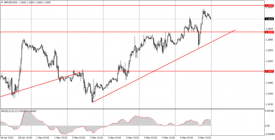 Макроэкономической статистики в понедельник будет немного. С большой натяжкой можно выделить лишь отчет по промышленному производству в Германии за март, который не имеет никаких шансов быть отработанным. А больше в календаре событий не содержится ничего интересного. На неделе в Великобритании состоится заседание Банка Англии, что может спровоцировать сильное движение, но это чуть ли не единственное важное событие. Евро и фунт продолжают торговаться алогично, при чем уже даже каждый по-своему. Доллар по-прежнему не может показать рост, даже когда для этого имеются соответствующие фундаментальные и макроэкономические факторы. На 5-минутном ТФ это не слишком важно, но торговать сейчас все равно сложнее, чем в обычное время. Разбор фундаментальных событий: