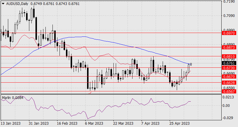 Прогноз по AUD/USD на 8 мая 2023 годаИнстаФорекс - Instaforex, 2 года назад AUD/USD Сегодня утром давление на линию Крузенштерна продолжается, и в случае закрепления цены над ней откроется путь до уровня 0.6810. Далее вполне может быть продолжение роста до цели 0.6873. Оживление роста цен на сырьё этому плану способствует.
