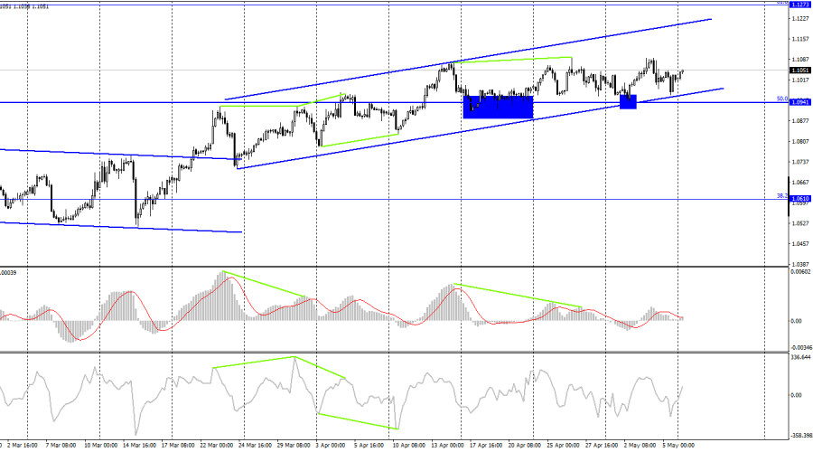 EUR/USD. 8 мая. ЦБ Нидерландов хочет видеть ставку ЕЦБ на 5%ИнстаФорекс - Instaforex, 2 года назад Добрый день, уважаемые трейдеры! Пара EUR/USD в пятницу выполнила падение к уровню 1,0966, отбой от него и возврат к уровню Фибо 100,0%, 1,1035 с закрытием над ним. Таким образом, процесс роста может быть продолжен в понедельник с целью 1,1092. Между уровнями 1,0966 и 1,1092 котировки находятся уже 10 рабочих дней. Движение пары у нас фактически горизонтальное со всеми вытекающими последствиями. Горизонтальное движение говорит о том, что быки и медведи сейчас находятся в равновесии. На прошлой неделе информационный фон был достаточно сильным, но ни быки, ни медведи не сумели его использовать на собственное благо. На этой же неделе новостей будет гораздо меньше, поэтому вероятность сохранения бокового коридора высокая. В понедельник вышел отчет по промышленному производству в Германии, которое сократилось в объемах в марте на 3,4%. Трейдеры ожидали увидеть максимум 1,3% падения. Таким образом, трейдеры-медведи получили хороший шанс на продажи, но пара EUR/USD никак не отреагировала на этот отчет. Справедливости ради нужно отметить низкую значимость этого отчета. Более важным было выступление Клааса Нота в воскресение. Президент ЦБ Нидерландов заявил, что процентная ставка ЕЦБ вполне может вырасти до 5%, если инфляция покажет более высокую устойчивость, чем ожидается регулятором. Сам он поддержал повышение ставки на 0,25% на прошлой неделе, что некоторые экономисты посчитали «голубиным» решением. Однако европейский регулятор также мог просто снизить шаг повышения ставки, но увеличить длительность. С малыми шагами будет проще реагировать на инфляционные и экономические изменения, чтобы не «переохладить» экономику. ЕЦБ вынужден внимательно отслеживать изменения внутри нее, так как экономический рост в последние несколько кварталов отсутствует. На 4-часовом графике пара выполнила закрепление над боковым коридором, что позволяет рассчитывать на продолжение роста в направлении уровня коррекции 61,8% - 1,1273. Отбой от уровня коррекции 50,0%, 1,0941, и новый восходящий трендовый коридор повышают вероятность дальнейшего роста евровалюты. Закрепление под двумя этим графическими паттернами сработает в пользу американской валюты и падения пары в направлении уровня Фибо 38,2%, 1,0610. Отчет Commitments of Traders (COT):