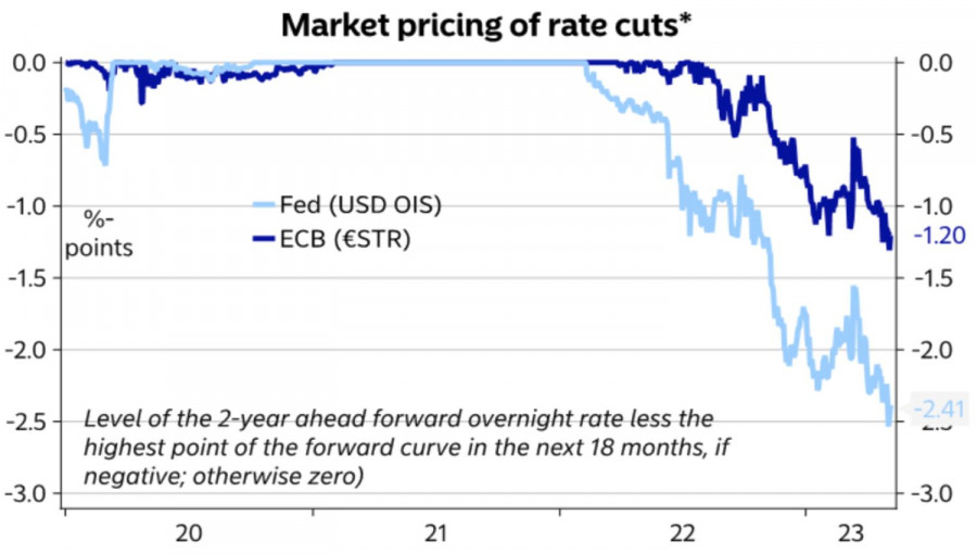 Доллар обжалует приговорИнстаФорекс - Instaforex, 2 года назад Доллару сейчас непросто. Над ним дамокловым мечом нависли ожидания рецессии. Причем ни слабые, ни сильные данные по экономике США расстановку сил на Forex не меняют. Если выходит разочаровывающая статистика, инвесторы считают, что спад. Если релиз полон позитива, как в случае с американской занятостью за апрель, инвесторы вспоминают о жесткой монетарной политике Федрезерва. Она все равно рано или поздно спровоцирует рецессию. Неудивительно, что после первоначального снижения котировки EUR/USD резко взмыли вверх. Возможно, на динамику пары оказал влияние пересмотр данных за февраль-март в сторону понижения сразу на 149 тыс., что нивелировало влияние роста занятости на 253 тыс. в апреле. Однако доллару США сложно укрепляться, когда в умах инвесторов глубоко засели идеи окончания цикла ужесточения денежно-кредитной политики и «голубиного» разворота. В их основе лежит история и падение 2-летних инфляционных ожиданий в США до требуемых ФРС 2%. С 1974 Федрезерв начинал снижать стоимость заимствований в среднем через 5 месяцев после достижения ими пика. Если предположить, что майские 5,25% - это потолок, то сентябрь-октябрь - вполне подходящий период для «голубиного» разворота. Проблема в том, что текущий цикл монетарной рестрикции особенный. Не каждый раз инфляция взбирается к 40-летнему максимуму. Инфляционные ожидания также частенько дают сбои. Динамика инфляционных ожиданий и инфляции в США с временным лагом На мой взгляд, 75%-е шансы, что ФРС снизит савку по федеральным фондам в сентябре, слишком высоки. Чем больше будет выходить сильной статистики по Штатам, тем ниже они будут опускаться. Это окажет поддержку доллару США. Рынок явно недооценивает его потенциал. Инвесторы считают, что окончание цикла монетарной рестрикции - приговор. На самом деле это не так. Однако и евро не лыком шит. После майского заседания ЕЦБ деривативы снизили предполагаемый потолок ставки по депозитам с 3,9% до 3,6%. То есть, они рассчитывают всего лишь на один акт монетарной рестрикции. Тем не менее устойчивая инфляция, сильный рынок труда и отсутствие рецессии в еврозоне намекают, что ставки могут быть выше. В любом случае инвесторы переоценивают риски «голубиных» разворотов как ФРС, так и Европейского центробанка. Динамика рыночных ожиданий по ставкам ФРС и ЕЦБ На мой взгляд, сильная статистика по США будет уменьшать шансы снижения ставки по федеральным фондам в 2023, по еврозоне - увеличивать вероятность продолжения цикла монетарной рестрикции ЕЦБ. Их чередование увеличивает риски перехода EUR/USD к среднесрочному торговому диапазону 1,085-1,12. Технически на дневном графике валютной пары имеет место накопление спекулятивных позиций, что выражается в консолидации. Выход за пределы верхней границы диапазона справедливой стоимости 1,097-1,1055 чреват продолжением ралли к 1,109, 1,1125 и 1,114, где за дело возьмутся продавцы. Падение EUR/USD ниже 1,101 станет сигналом для открытия шортов. Материал предоставлен компанией InstaForex - www.instaforex.com |