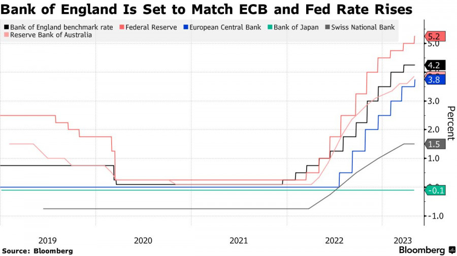 У Банка Англии нет выбораИнстаФорекс - Instaforex, 2 года назад Британский фунт продолжает обновлять месячные максимума, а Великобритания остается последней страной с развитой экономикой, вовлеченной в ожесточенную борьбу с инфляцией. Денежные рынки предполагают, что Федеральная резервная система США сделала все необходимое для стабилизации цен после повышения процентной ставки на четверть пункта в прошлую среду на 5,25%. Аналогичным путем пошел и Европейский центральный банк, сменивший свой агрессивный тон на более мягкий, повысив ставку до уровня в 3,75%. Эти центральные банки уже добились прогресса в борьбе с высокими процентными ставками, тогда как Банк Англии, первым начавший политику ужесточения в декабре 2021 года, пока результатами похвастаться не может. Как ожидается, он повысит ставки на четверть пункта до 4,5% на этой неделе, а затем еще раз в августе, с вероятностью окончательного повышения до 5%. в сентябре этого года. Очевидно, что даже несмотря на более жесткую политику, чем Европейский центральный банк, и более длительную, чем у Федеральной резервной системы, британскому регулятору предстоит еще многое сделать. Трейдеры видят ставки на уровне 5%, так как инфляция по-прежнему выражается двузначными числами. Это сохраняет спрос на британский фунт и придает ему силу, особенно по отношению к американскому доллару, который вот-вот может растерять еще больше позиций, так как Федеральная резервная система готова взять первую паузу в цикле повышения ставок более чем за 1,5 года. Инфляция сейчас представляет большую проблему в Великобритании, чем в других развитых странах. Она выглядит куда более укоренившейся, что создает дополнительную головную больше ни только для центрального банка, но и для всего правительства. Это означает, что денежно-кредитная политика в Великобритании будет и дальше оставаться жесткой, что не вписывается в планы премьер-министра Риши Сунака по стимулированию экономического роста и поддержке населения. Как отмечают некоторые экономисты, неудачная исключительность Британии хорошо задокументирована. Великобритания пережила сочетание острой нехватки рабочей силы в США и шока цен на энергоносители в Европе. Разница сейчас в том, что напряженность на рынке труда в США ослабевает, а цены на энергоносители в Европе падают, тогда как проблемы в Великобритании остаются на прежнем месте. Великобритания сейчас находится в исключительно опасном положении: общая инфляция потребительских цен выражается двузначными числами, на уровне 10,1%, что в пять раз превышает его мандат. И все это происходит при процентных ставках, которые близки к уровню в 5,0%. По прогнозам экономистов, в ближайшие месяцы мы можем увидеть снижение инфляции на 2 процентных пункта, а на еще один процентный пункт инфляция просядет в июле. Но и этого будет крайне недостаточно, чтобы думать о смягчении денежно-кредитной политики, так что у британского фунта есть хорошие шансы продолжить рост. Вместе с этим базовые показатели дают более четкий сигнал о долгосрочном ценовом давлении. Базовая инфляция составляет 6,2% в Великобритании и в Британии продолжает иметь место проблема роста заработной платы, которая стимулирует инфляцию и еще больше укореняет ее в экономике. По последним данным средней недельный заработок в Великобритании уже вырос на 