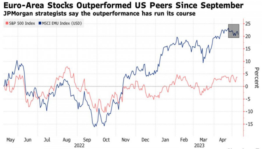 Доллар возвращается на родинуИнстаФорекс - Instaforex, 2 года назад Семь раз отмерь, один отрежь. Прежде чем заключать сделку, нужно хорошо подумать. Сделать это неимоверно трудно, когда рынки растут или падают на эмоциях. Несмотря на то, что сильная статистика по занятости в США привела к укреплению евро, в этом было мало логики. И в конечном итоге разум восторжествовал: EUR/USD ринулась вниз со скоростью курьерского поезда. Коррекция имеет прекрасную возможность продолжиться. Когда инвесторы рассуждают о силе восходящего тренда по основной валютной паре, они вспоминают про дивергенцию в экономическом росте и в монетарной политике. Дескать, ФРС завершила цикл повышения ставок, а ЕЦБ намерен его продолжать. Дескать, благодаря падению цен на газ в Старом Свете с €330 до €35 за мегаватт в час еврозона избежит рецессии. Штаты, напротив, столкнутся со спадом из-за проблем с потолком госдолга и банковского кризиса. Проблема в том, что это уже не новости. Они учтены в котировках EUR/USD. Рынку нужны свежие данные. Вера в ускорение экономики валютного блока на фоне замедления ее американского аналога приводила к переливу капитала из США в Европу. От уровней сентябрьских минимумов индекс MSCI рынка акций Старого Света вырос на 28% в евро и на 45% в долларах из-за восходящего тренда по EUR/USD. S&P 500 за этот же период поднялся лишь на 15%. Динамика фондовых индексов Европы и США И вот наконец JP Morgan заявляет, что пришла пора избавляться от переоцененных европейских акций. Попутные ветры в виде надежд на восстановление китайской экономики и устойчивости еврозоны к энергетическому кризису демонстрируют признаки ослабления. Если эти предположения верны, репатриация капитала в Штаты заложит фундамент под коррекцию EUR/USD. Что касается потенциально дефолта США и банковского кризиса, то не так страшен черт, как его малюют. Многие инвесторы воспринимают дебаты о потолке госдолга как политическое зрелище. Вопрос должен быть урегулирован на падающем флажке. Почему? Потому что так всегда происходит! Банкротство кредитных учреждений? S&P 500 страдал, в первую очередь, из-за падения акций банков. В то время как корпоративная отчетность превосходила прогнозы. Как и макростатистика. При этом поглощение First Republic гигантом JP Morgan нарисовало рынку схему, по которой кризис может быть преодолен в будущем. Окончательно добил «медведей» по фондовому индексу сильный отчет об американской занятости за апрель. Динамика S&P 500 и акций американских банков Таким образом, на Forex сложилась ситуация, когда многие «бычьи» факторы для EUR/USD уже учтены в котировках пары. При этом банковская сфера и экономика США не так слабы, как кажется. Чем не повод для отката основной валютной пары? Технически на дневном графике EUR/USD продолжается реализация разворотного паттерна Двойная вершина. Сформированные от уровня 1,1010 короткие позиции держим и периодически наращиваем на отбое от справедливой стоимости на 1,098 и на прорыве нижней границы ее диапазона 1,095-1,105. Материал предоставлен компанией InstaForex - www.instaforex.com |