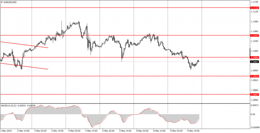Макроэкономической статистики в среду будет не очень много. В Германии рано утром будет опубликован отчет по инфляции, но это будет финальное значение за март, значение которого вряд ли будет сильно отличаться от предварительного значения. Таким образом, и реакция на этот отчет вряд ли последует. В Штатах во второй половине дня будет опубликован отчет по инфляции, который действительно может считаться важным, но в данное время прогнозы по нему говорят о том, что значение за апрель не будет сильно отличаться от мартовского. Если фактическое значение не будет сильно отличаться от прогнозного или предыдущего, то и реакции на этот отчет не последует. В то же время фактическое значение может отличаться от прогнозного в любую сторону. По логике вещей, если значение отчета будет ниже 4,9%, то доллар может оказаться под давлением. Если же инфляция останется без изменений или вырастет, то уже доллар может испытать прилив оптимизма, так как вероятность еще одного повышения ставки в 2023 году заметно возрастет. Разбор фундаментальных событий: