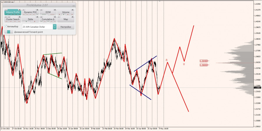 Область выгодных цен на покупку с точки зрения маржинального обеспечения располагается между зонами 1/4 и 1/2, построенными от максимума 08.05.2023.