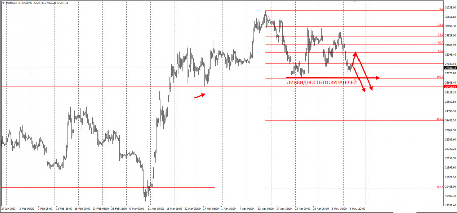 Не покупайте Bitcoin перед этим уровнем! Ловушка покупателей!ИнстаФорекс - Instaforex, 2 года назад Добрый день, уважаемые трейдеры! Представляю вашему вниманию торговую идею по Bitcoin. Итак, 27 апреля мы давали торговую идею на понижение курса по следующей схеме: Как вы можете видеть, котировки инструмента перешли к снижению и на данный момент оказывают понижательное давление на уровень 27000$: В этой ситуации покупатели за три недели находятся в ловушке и вынуждены ограничивать свои риски на 27000$ и 26500. Инструмент продолжает формировать трёхволновую структуру "АВС". Предлагаю рассмотреть шортовые позиции слонговых коррекций по схеме, представленной на скрине выше. Прибыль зафиксировать на пробое 27000$. |