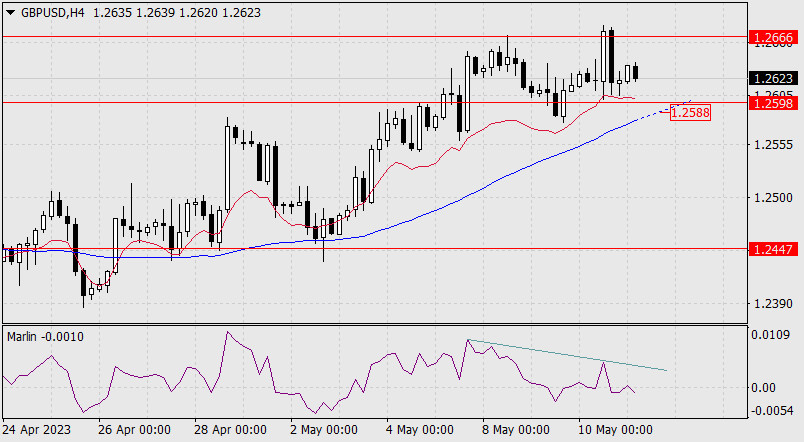На четырёхчасовом графике также образована дивергенция. Под уровнем 1.2598 находится линия Крузенштерна (1.2588), поэтому сегодняшнему дню желательно закрыться ниже именно этой линии, а ещё лучше с закреплением.