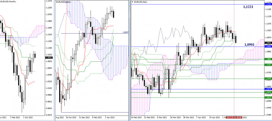 EUR/USD и GBP/USD 11 мая – технический анализ ситуацииИнстаФорекс - Instaforex, 2 года назад EUR/USD Старшие таймфреймы Вчера ситуация не претерпела существенных изменений. Пара осталась в зоне притяжения и влияния уровней дневного креста Ишимоку (1,1017 – 1,0995 – 1,0964 – 1,0933). Основной задачей игроков на понижение на данном участке рынка является ликвидация дневного золотого креста и закрепление под месячной поддержкой среднесрочного тренда (1,0901). Ориентир для игроков на повышение не изменил своё расположение, оставаясь на 1,1221, но для его тестирования быки должны покинуть текущую зону консолидации, обновив максимальный экстремум 1,1096. Н4 – Н1 Игроки на понижение вчера сохранили своё преимущество. Сегодня продолжают снижение. Впереди поддержки классических Пивот уровней (1,0912 – 1,0882). Ключевые уровни младших таймфреймов (1,0977 центральный Пивот уровень + 1,1001 недельная долгосрочная тенденция) в настоящий момент формируют рубежи наиболее важных сопротивлений, пробой которых способен изменить действующий баланс сил. *** GBP/USD Старшие таймфреймы Обновив максимум прошлой недели, игроки на повышение вновь потеряли инициативу. Ближайшим ориентиром для подъёма продолжает служить заключительный уровень месячного креста Ишимоку (1,2760). Зону поддержек на случай развития нисходящего движения сейчас формируют уровни дневного золотого креста Ишимоку (1,2556 – 1,2510 – 1,2471). Н4 – Н1 Игроки на понижение пробили ключевую поддержку – недельную долгосрочную тенденцию (1,2615) и сейчас стремятся закрепить своё преимущество. Следующие понижательные ориентиры можно обозначить на 1,2556 и 1,2512 (классические Пивот уровни). Ключевые уровни в настоящий момент формируют зону сопротивлений, располагаясь в пределах 1,2615-33 (центральный Пивот уровень дня + недельная долгосрочная тенденция). Для появления новых бычьих перспектив, игроки на повышение должны вернуть себе ключевые уровни. *** При техническом анализе ситуации использованы: старшие таймфреймы – Ichimoku Kinko Hyo (9.26.52) + уровни Фибо Киджун; младшие таймфреймы – Н1 – Pivot Points (классические) + Moving Avarage 120 (недельная долгосрочная тенденция). Материал предоставлен компанией InstaForex - www.instaforex.com |