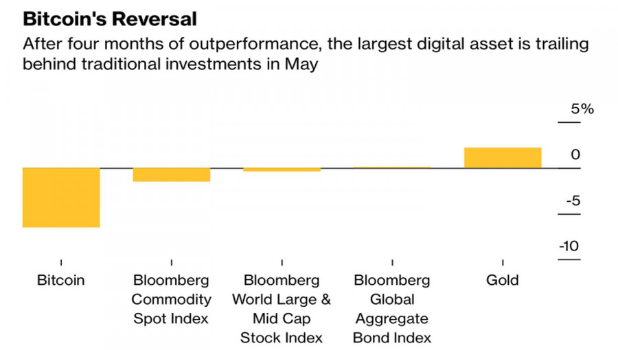 Три причины продать биткойнИнстаФорекс - Instaforex, 2 года назад От великого до смешного один шаг. Взлетевший на 72% по итогам января-апреля биткойн в мае превратился в аутсайдера. Он проигрывает и акциям, и облигациям, и активам товарного рынка. При этом снижение корреляции с фондовыми индексами США говорит о наличии трудностей внутри криптосистемы. И действительно такие проблемы есть. Снижение ликвидности, перегруженность блокчейна и нападки регулирующих органов подрывают настроения инвесторов и заставляют котировки BTC/USD падать. Динамика биткойна, золота и рыночных индексов в мае По данным CCData, объем спотовых торгов крупнейшей бирже цифровых активов Binance упал в апреле на 48% до $287 млрд. Речь идет о втором самом низком месячном показателе с 2021. Рынок работает в условиях очень низкой ликвидности, что, вероятнее всего, является результатом ухода с него маркет-мейкеров. Причины следует искать в ужесточении контроля, массовых проверках и повышенной активности регулирующих органов. Приостановка Binance вывода биткойнов говорит о хрупкости криптосистемы. Биржа была вынуждена это сделать в связи с всплеском чеканки мемкойнов, что забило всю сеть. Данные блокчейна показывают около 300 тыс. ожидающих транзакций в сети биткойн. CryptoQuant отмечает, что средняя комиссия за транзакцию выросла до $14. В начале года она составляла $0,6. Доверие сложно заработать, но легко потерять. Потеря доверия к криптоиндустрии выражается и в падении ликвидности, и в проблемах блокчейна, и в опасениях по поводу ужесточения регулирования криптоиндустрии. Все это приводит к снижению котировок BTC/USD. Потенциал их роста уже не выглядит космическим. Согласно исследованиям Deribit, самая высокая стоимость опционных контрактов на биткойн с датой исполнения в мае-июле составляет 32000. Еще неделю назад речь шла о цифре в 40000. Диапазон стоимости опционов на биткойн На рынке ходят слухи, что снижение связи лидера сектора криптовалют с фондовыми индексами США обусловлено уменьшением влияния на BTC/USD макроэкономики. На мой взгляд, это не так. Одним из драйверов обвала биткойна в настоящее время является восставший из пепла доллар. После статистики по американскому рынку труда инвесторы сомневаются, что ФРС будет снижать ставку по федеральным фондам в 2023. До этого ожидания «голубиного» разворота толкали вниз котировки индекса USD. По моему мнению, ралли BTC/USD в январе-апреле было чрезмерным. Вероятнее всего, бешеные скачки биткойна остались в прошлом. Он становится обычным финансовым инструментом. А значит, должен найти свою ценовую нишу. Предположу, что торговый диапазон в среднесрочной перспективе будет формироваться вокруг 25000 +/- 10000. Технически неспособность «быков» по BTC/USD выйти за пределы верхней границы треугольника завершилась их разгромом. Котировки пробили нижнюю границу и устремились на юг. Пока они держатся ниже пивот-уровня 27125, настрой остается «медвежьим». Актуальны продажи в направлении 25000 и 23200. Материал предоставлен компанией InstaForex - www.instaforex.com |