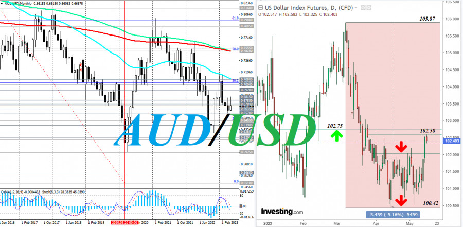 AUD/USD: на что укажут протоколы майского заседания РБА?ИнстаФорекс - Instaforex, 2 года назад Как мы отметили в нашей сегодняшней статье «Доллар: краткие итоги и ближайшие перспективы», важная макро статистика уровня мирового рынка появится уже завтра, когда в начале азиатской торговой сессии (в 02:00 GMT) Национальное бюро статистики Китая опубликует очередной ежемесячный отчет с данными по уровню розничных продаж и по объемам промышленного производства в стране. Индикатор «розничные продажи» оценивает общий объем розничных продаж и вырученных денежных средств, считаясь также основным показателем потребительских расходов, на которые приходится большая часть общей экономической активности. При этом рост объёмов промышленного производства может спровоцировать ускорение темпов инфляции, что, в свою очередь, может оказывать на Народный Банк Китая давление в пользу ужесточения монетарной и финансово-бюджетной политик. В целом, как ожидается, значительное увеличение объемов розничных продаж и усиление роста промышленного производства (в апреле) может оказать позитивное влияние на котировки юаня и валют азиатско-тихоокеанского региона, в частности австралийского доллара (Китай является крупнейшим торгово-экономическим партнером Австралии и покупателем ее сырьевых товаров). Относительно же динамики австралийского доллара также необходимо обратить внимание на публикацию в 01:30 (GMT) протокола майского заседания РБ Австралии. Если РБА позитивно оценивает состояние рынка труда в стране, темпы роста ВВП, а также проявляет «ястребиный» настрой в отношении инфляционного прогноза в экономике, рынки расценивают это как более высокую вероятность повышения ставки на следующем заседании, что является позитивным фактором для AUD. Как известно, на завершившемся в начале этого месяца заседании руководители Резервного банка Австралии приняли решение повысить ключевую процентную ставку на 0,25% (до 3,85% с 3,60% ранее). В сопроводительном же заявлении говорилось, что «может потребоваться некоторое дальнейшее ужесточение денежно-кредитной политики». По мнению руководителей австралийского ЦБ, «инфляция на уровне 7% все еще слишком высока, и пройдет еще некоторое время, прежде чем она вернется в целевой диапазон», хотя, «дальнейшее ужесточение будет зависеть от того, как будут развиваться экономика и инфляция». Публикуемый завтра протокол с этого заседания может предоставить участникам рынка, следящим за котировками AUD, новую информацию. Мягкая риторика заявлений руководителей банка в отношении, прежде всего, инфляции окажет понижательное давление на AUD, а жесткая – повышательное. А пока что пара AUD/USD корректируется вверх после значительного снижения в минувшие четверг и пятницу. Снижение цены остановилось в зоне уровня поддержки 0.6835. Для более уверенного роста в сторону ключевого уровня сопротивления 0.6785, отделяющего среднесрочный бычий рынок от медвежьего, для начала, цене необходимо преодолеть два важных краткосрочных уровня сопротивления 0.6704, 0.6709 (более подробно см. в «AUD/USD: сценарии динамики на 15.05.2023»). *) о важных событиях недели см. в Важнейшие экономические события недели 15.05.2023 – 21.05.2023 Материал предоставлен компанией InstaForex - www.instaforex.com |