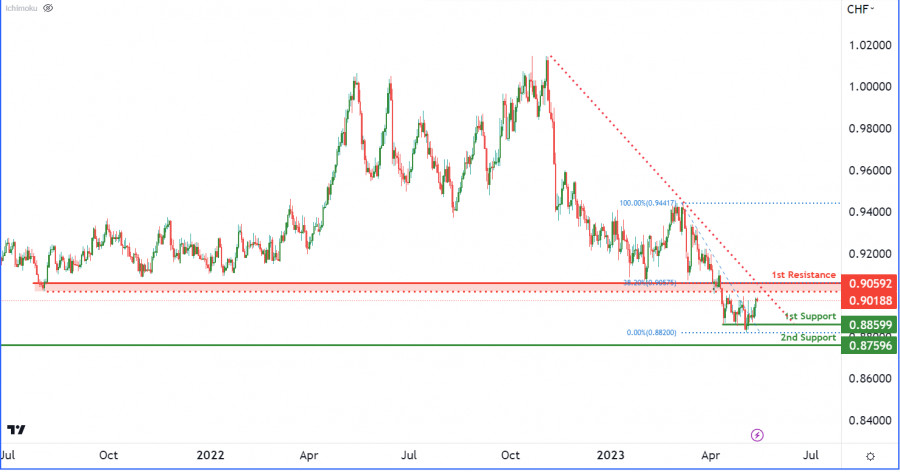 USD/CHF развивает медвежий импульс. Прогноз на 15 мая 2023 г.