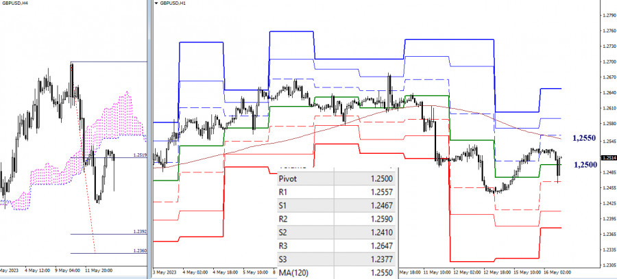 EUR/USD и GBP/USD 16 мая – технический анализ ситуацииИнстаФорекс - Instaforex, 2 года назад EUR/USD Старшие таймфреймы Прошлые сутки пара осталась в зоне притяжения недельного краткосрочного тренда (1,0864). Основное притяжение и влияние на рынок в сложившейся ситуации оказывают два сильных уровня 1,0864 – 1,0901 (недельный краткосрочный тренд + месячный среднесрочный тренд), поэтому сейчас возможно торможение или развитие консолидации. После завершения паузы и появления на рынке лидера, движение может получить развитие или в бычьем направлении, тогда ориентирами станут дневной крест Ишимоку (1,0941 – 1,0981 – 1,1000) и максимальный экстремум (1,1096), или в медвежьем направлении, при этом внимание будет направлено на дневное облако (1,0814 – 1,0775) и месячный уровень (1,0763). Н4 – Н1 На младших временных интервалах основное преимущество сейчас принадлежит игрокам на понижение. Тем не менее на действующем нисходящем тренде в настоящий момент наблюдается формирование очередного коррекционного движения. Пара закрепилась на центральном Пивот уровне дня (1,0871). Далее наибольшее значение для коррекции имеет сопротивление недельной долгосрочной тенденции (1,0921). Пробой и закрепление выше мувинга, а так же его разворот могут стать основанием для смены приоритетов и усиления бычьих настроений. Кроме ключевых уровней внутри дня значение могут иметь сопротивления (1,0895 – 1,0917 – 1,0941) и поддержки (1,0849 – 1,0825 – 1,0803) классических Пивот уровней. *** GBP/USD Старшие таймфреймы Ранее медведи совсем немного не дотянулись до поддержки недельного краткосрочного тренда (1,2421), а проявивший активность на рынке соперник вчера сумел вернуть пару в зону притяжения дневного золотого креста Ишимоку (1,2471 – 1,2515 – 1,2561). В результате среди ближайших ориентиров на данном участке по-прежнему можно отметить для игроков на повышение – максимум прошлой недели (1,2678), а для игроков на понижение – недельный краткосрочный тренд (1,2421). Н4 – Н1 Основное преимущество продолжает оставаться на стороне игроков на понижение, но медведи уже давно не могут обновить минимум и продолжить снижение. Вместо этого они работают в коррекционной зоне, основным целевым ориентиром данной зоны является сопротивление недельной долгосрочной тенденции (1,2550). Закрепление выше и разворот мувинга изменит действующий баланс сил. Дополнительными ориентирами для движения внутри дня являются поддержки (1,2467 – 1,2410 – 1,2377) и сопротивления (1,2557 – 1,2590 – 1,2647). *** При техническом анализе ситуации использованы: старшие таймфреймы – Ichimoku Kinko Hyo (9.26.52) + уровни Фибо Киджун; младшие таймфреймы – Н1 – Pivot Points (классические) + Moving Avarage 120 (недельная долгосрочная тенденция). Материал предоставлен компанией InstaForex - www.instaforex.com |