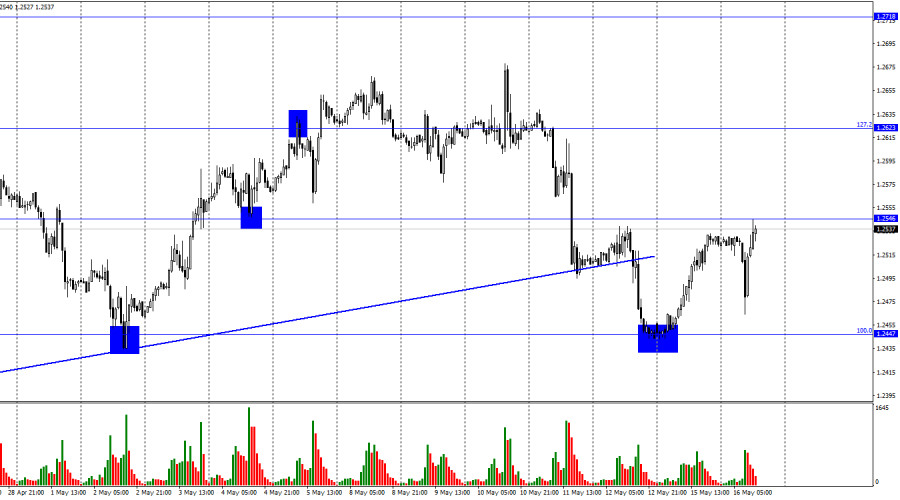 GBP/USD. 16 мая. Безработица в Великобритании набирает оборотыИнстаФорекс - Instaforex, 2 года назад Добрый день, уважаемые трейдеры! На часовом графике пара GBP/USD выполнила во вторник резкое падение после выхода британской статистики, но очень быстро восстановилась и выполнила рост к уровню 1,2546. Отбой котировок от этого уровня сработает в пользу американской валюты и возобновления падения в направлении уровня Фибо 100,0% – 1,2447. Закрепление пары над уровнем 1,2546 повысит шансы на продолжение роста в направлении следующего коррекционного уровня 127,2% – 1,2623. Информационный фон вторника был интересен и для британской валюты. Утром уже вышло сразу несколько отчетов по зарплатам и безработице, которые и заставили трейдеров торговать активнее. Уровень безработицы в марте вырос с 3,8% до 3,9%. Количество заявок на пособия по безработице увеличилось на 46 тысяч вместо падения на 15 тысяч, которого ожидали трейдеры. Заработные платы выросли на 5,8%, что совпало с прогнозом. В целом пакет статистики можно посчитать негативным для британца. Таким образом, его падение в первой половине дня было ожидаемо, но дальнейшее быстрое восстановление – необъяснимо. Трейдеры-быки показали сегодня, что они не собираются сдаваться без боя, но ранее они потеряли тренд, так как пара выполнила закрытие под трендовой линией. Я ожидаю отбоя от уровня 1,2546 и возобновления падения. В общем и целом, британская экономика оставляет сейчас множество вопросов за собой. Экономические показатели продолжают снижаться, но рецессии пока удается избежать. Банк Англии повысил ставку в двенадцатый раз подряд, но в последнее время подает слишком много сигналов о близящемся завершении ужесточения ДКП. Трейдеры пока либо не верят в завершение этой программы, либо игнорируют этот момент. Фунт не показывает особого желания падать даже при нескольких сигналах на продажу, которые формируются уже месяц. На 4-часовом графике пара выполнила падение к уровню 1,2441 и отбой от него. Таким образом, был выполнен разворот в пользу британца с потенциалом возобновления восходящего тренда в направлении уровня Фибо 100,0% – 1,2674. Закрепление курса пары под уровнем 1,2441 сработает в пользу валюты США и возобновления падения в направлении следующего уровня коррекции 127,2% – 1,2250. Назревающих дивергенций сегодня не наблюдается ни у одного индикатора. Отчет Commitments of Traders (COT): Настроение категории трейдеров «Non-commercial» за последнюю отчетную неделю стало более «бычьим». Количество Long-контрактов на руках спекулянтов выросло на 12900 единиц, а количество Short – на 9437. Общее настроение крупных игроков остается полноценным «бычьим» (долгое время оно было «медвежьим»), но количество Long и Short-контрактов сейчас практически одинаковое – 71,5 тысячи и 67 тысяч соответственно. Британец продолжает преимущественно расти, хотя очень немного факторы поддерживают покупателей. Так как соотношение Long и Short практически равное, фунт нельзя считать перекупленным. Перспективы британца остаются неплохими, но в ближайшее время от него вполне можно ожидать падения, так как он растет уже в течение длительного периода времени. Календарь новостей для США и Великобритании: Великобритания – Средний уровень заработной платы с учетом премий (06-00 UTC). Великобритания – Уровень безработицы (06-00 UTC). Великобритания – Изменение числа заявок на пособие по безра